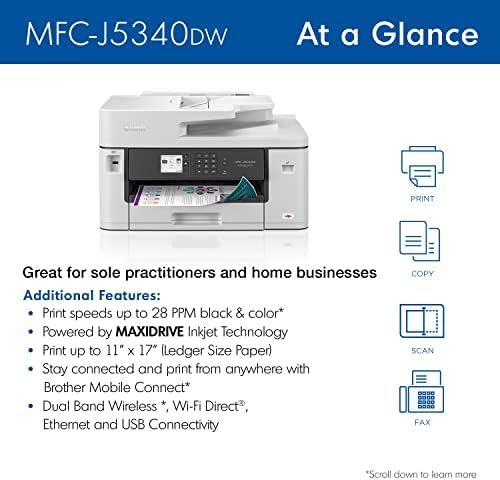 Brother MFC-J5340DW Business Color Inkjet All-in-One Printer with Printing up to 11”x17 (Ledger) Size Capabilities