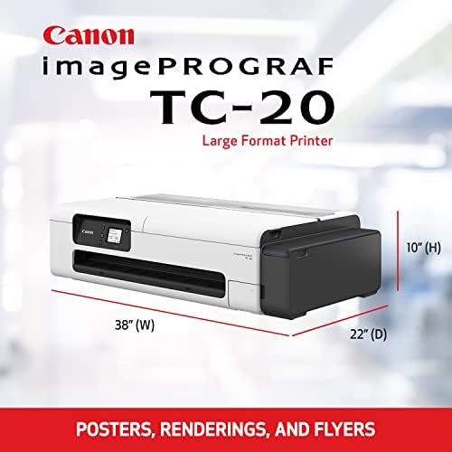 Canon imagePROGRAF TC-20 24″ Large Format Poster & Plotter Printer – Automatic Roll & Cut Sheet Paper Feeder, Ships with 280ml of Ink – USB, Wi-Fi, LAN