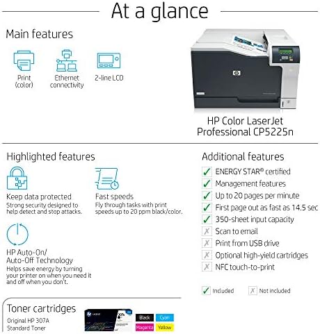 TONER CARTRIDGES YOU CAN TRUST – Avoid reprints, wasted supplies, and service calls by using preinstalled. Original HP 307A toner cartridges designed for your color laser printer