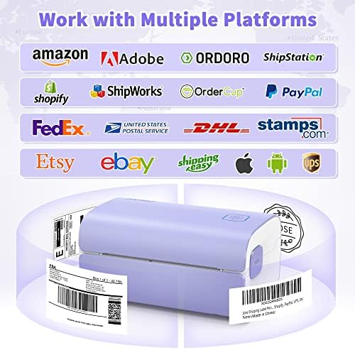 【Multi-Application】Jiose bluetooth thermal label printer can print the major label on shipping and e-commerce selling platforms including FedEx, USPS, DHL, Amazon, Etsy, eBay, Shopify, etc. It’s an ideal choice for multiple scenarios including home, office, shop, market, warehouse, etc.